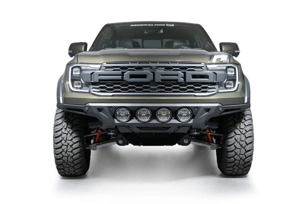 Our ADD Edge Ranger Raptor Front Bumper features an ultra high-clearance fitment and sleek center light mount for the perfect combination of high-end styling and off-road utility. The low-profile wings provide the highest clearance out of all the ADD bumper lines, so you can navigate larger obstacles when off-road. The integrated light mount can run four RIGID 6-inch 360 Series Lights or four Baja Designs LP4 Lights. The mount’s frenched-in design provides a smooth & finished look.