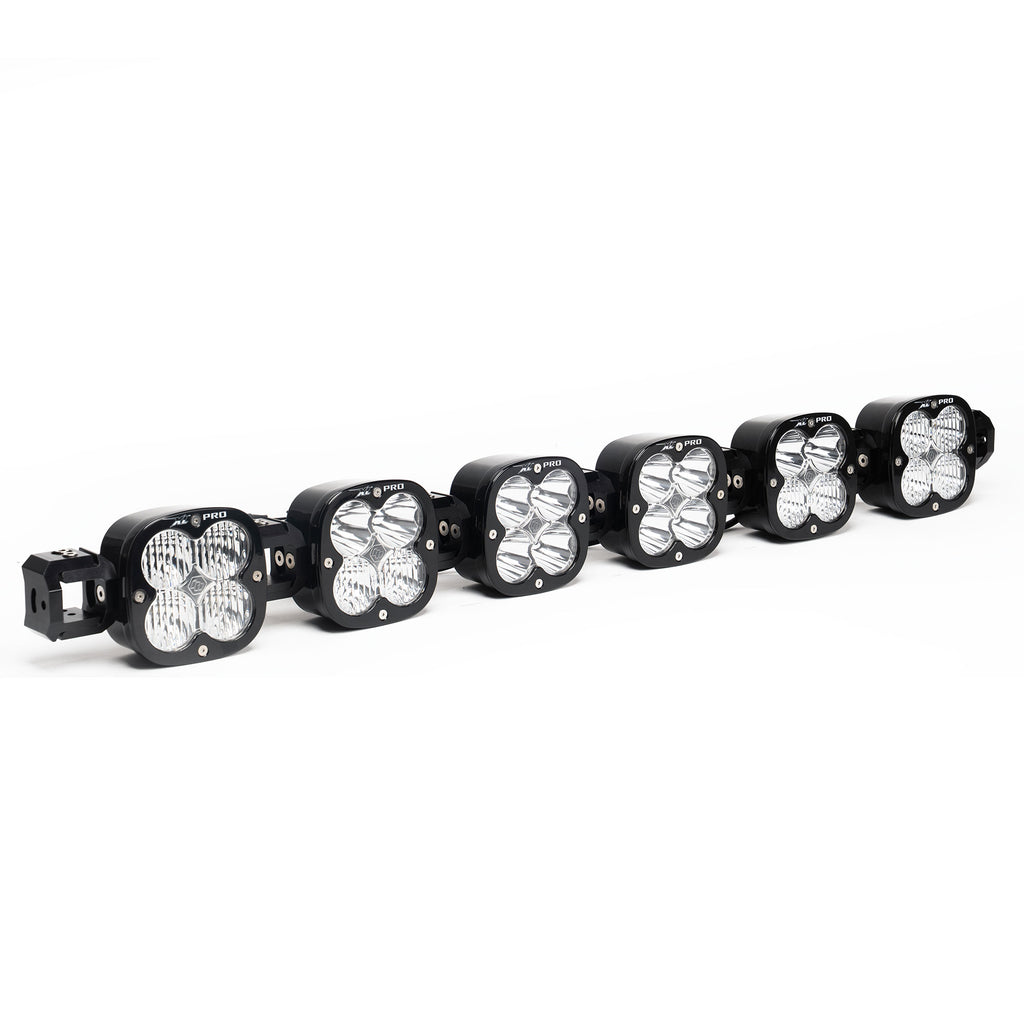 Experience full adjustment and total performance with the Baja Designs XL Linkable LED light bar kit, engineered for enthusiasts seeking to take charge with a lighting package that is completely customizable. Built around our popular XL Sport shallow moto housing, each light offers up 3,162 raw lumens each from our next generation LEDs, the XL Linkable can be built with 3 up to 8 forward projecting lights that provide a smooth blend due to the use of our wide cornering, driving combo and spot lenses illuminating zones 1, 2, 3 and 4 simultaneously. The unique feature of our XL Linkable system provides 45 degrees of vertical pitch adjustment within each light or the entire unit. Completely independent horizontal adjustment per light allows for straight or arc configurations to perfectly match the lines of your vehicle’s bumper or roofline. The wiring comes fully crimped and trimmed, allowing for easy installation and the ability to add links down the road, and black rock guards are included to protect the lights when not in use. If you're looking to have a lighting system that performs as well as it looks, this is the auxiliary light kit for you!