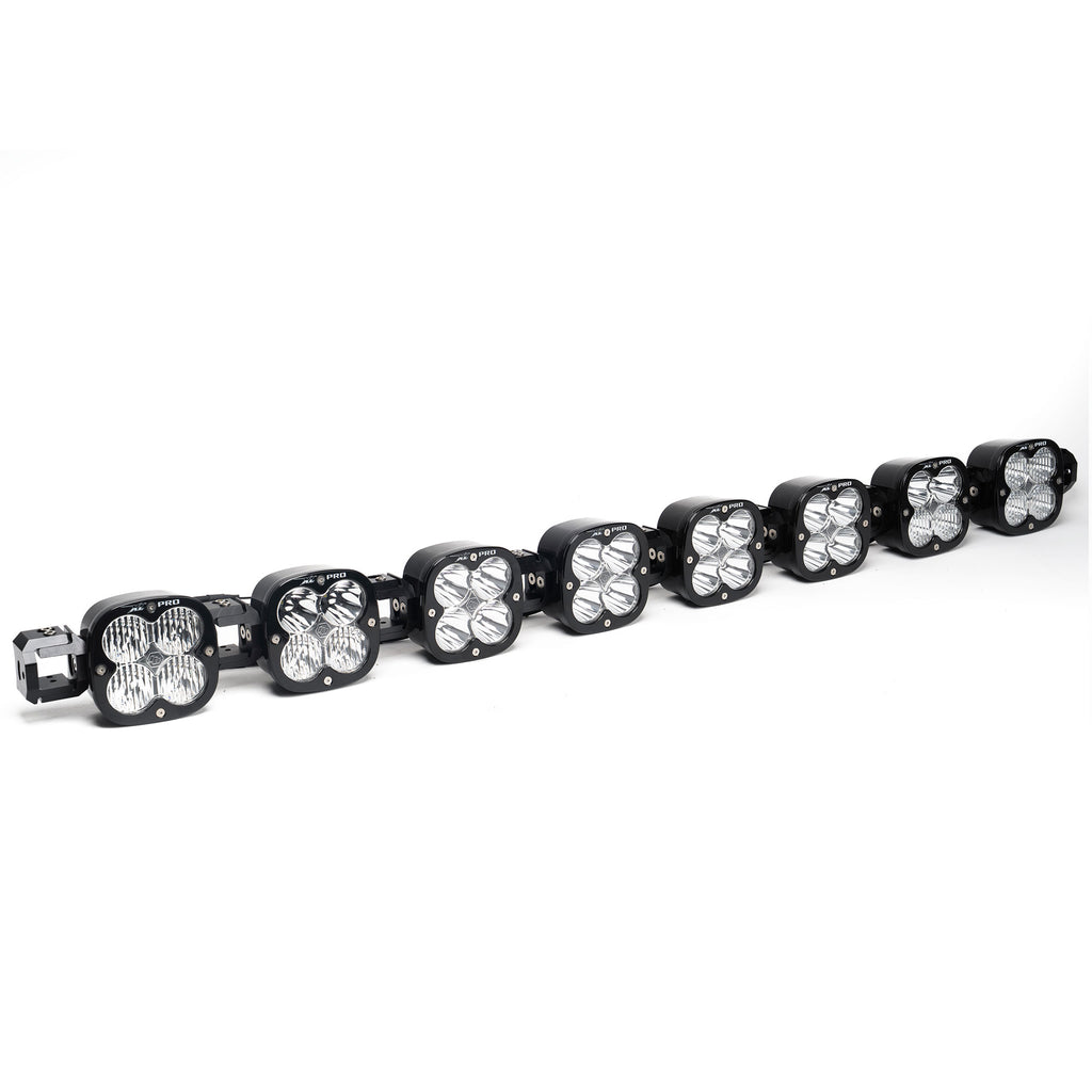 Experience full adjustment and total performance with the Baja Designs XL Linkable LED light bar kit, engineered for enthusiasts seeking to take charge with a lighting package that is completely customizable. Built around our popular XL Sport shallow moto housing, each light offers up 3,162 raw lumens each from our next generation LEDs, the XL Linkable can be built with 3 up to 8 forward projecting lights that provide a smooth blend due to the use of our wide cornering, driving combo and spot lenses illuminating zones 1, 2, 3 and 4 simultaneously. The unique feature of our XL Linkable system provides 45 degrees of vertical pitch adjustment within each light or the entire unit. Completely independent horizontal adjustment per light allows for straight or arc configurations to perfectly match the lines of your vehicle’s bumper or roofline. The wiring comes fully crimped and trimmed, allowing for easy installation and the ability to add links down the road, and black rock guards are included to protect the lights when not in use. If you're looking to have a lighting system that performs as well as it looks, this is the auxiliary light kit for you!