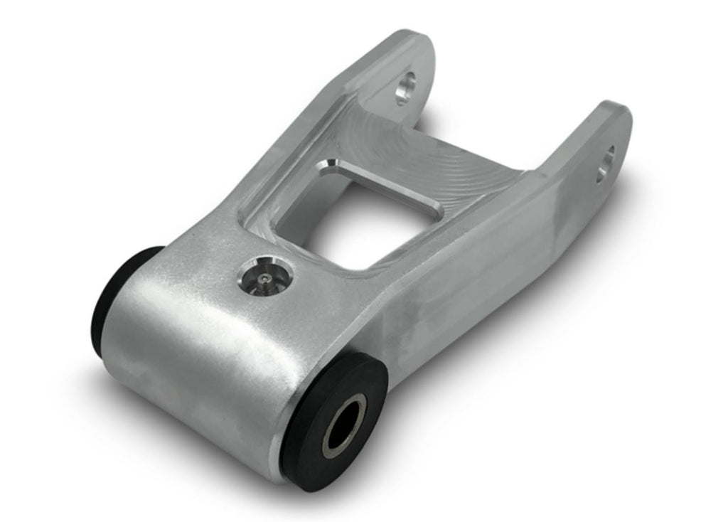 Billet Aluminum RPG Shackle Kit with Poly Bushings. Allows leaf springs to have more articulation/droop travel. These fit with stock, Icon, or Deaver leaf springs.