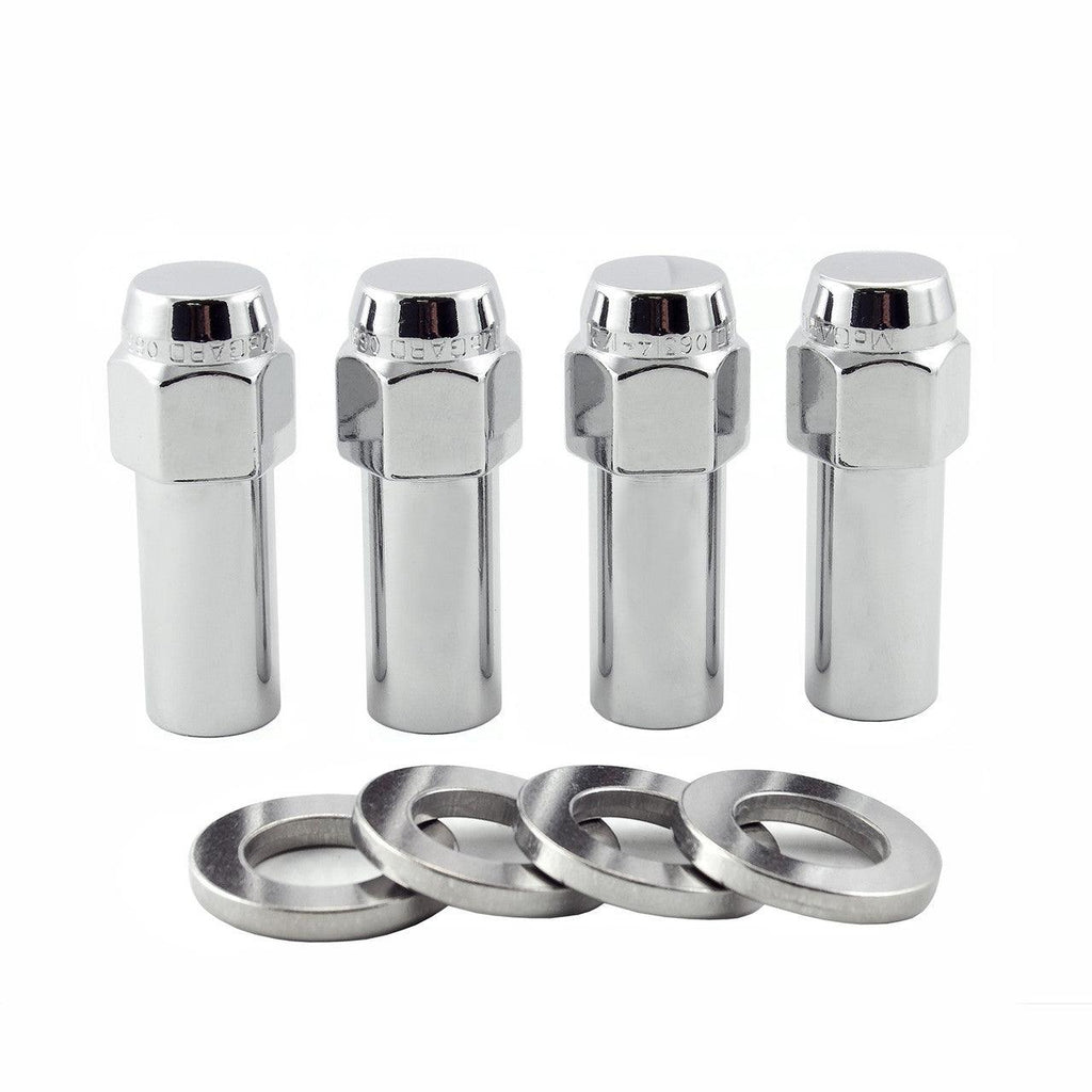Chrome Extra Long 1.365 Shank Style Lug Nut Set (M12 x 1.5 Thread Size) - Set of 4 Lug Nuts and 4 Washers