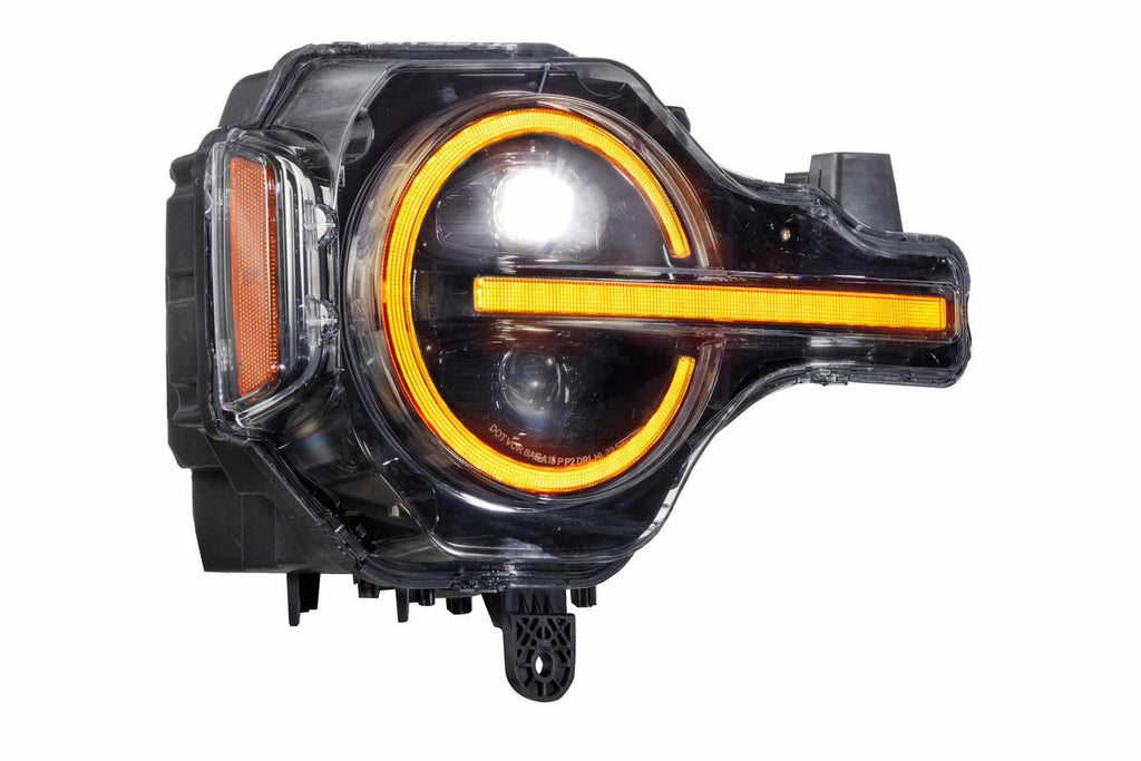 RGB Daytime Running Lights: The DRL may share the same overall shape as the OEM LED headlights, but that's where the similarities end! The XRGB headlights use color changing LEDs that allow you to customize their color using a simple-to-use Bluetooth app on your Apple or Android smart phone. Despite that, they sacrifice nothing in terms of intensity or consistency! Set them to white, or even Amber just like the new Bronco Raptor, and from afar you wouldn't be able to tell the difference between the XRGB and the original headlights!